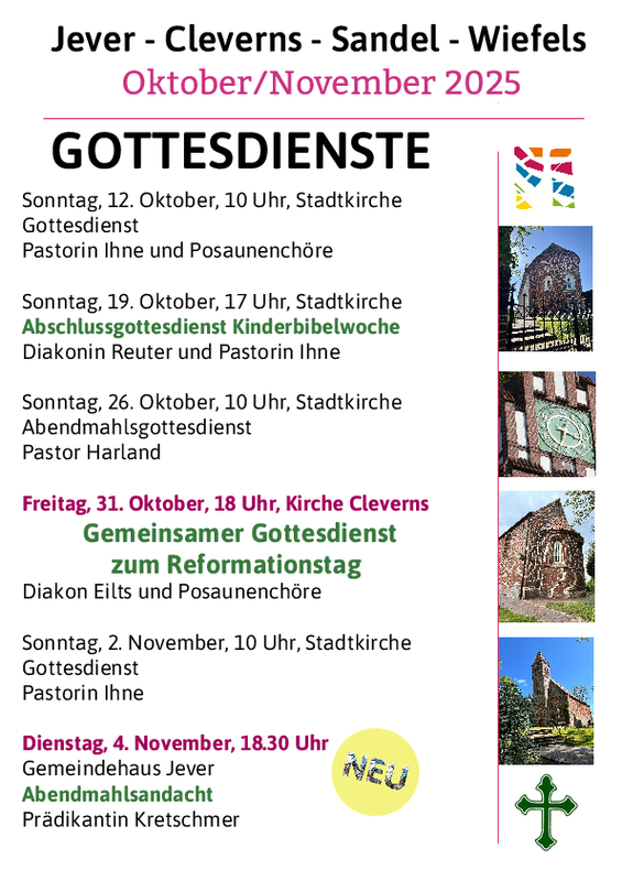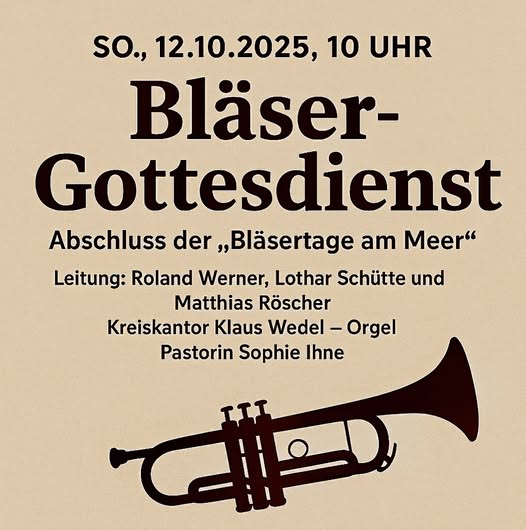 Sonntag, 12. Oktober 2025, 10 Uhr, Stadtkirche, Bläser-Gottesdienst der Teilnehmer*innen der „Bläserwerkstatt am Meer“.