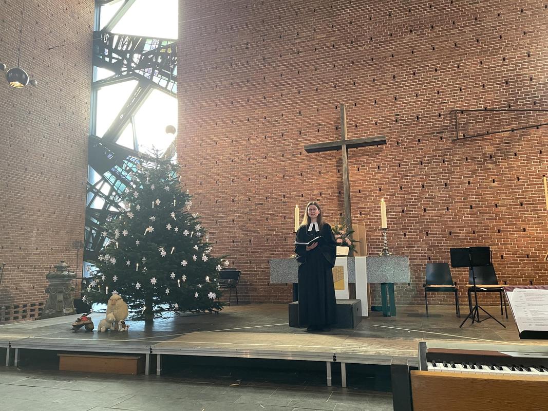 Die Geschichte vom Nikolaus, der mit den Seefahrern unterwegs ist war Mittelpunkt der Andacht und der Nikolaus hatte auch kleine Geschenke für die Kinder mitgebracht.